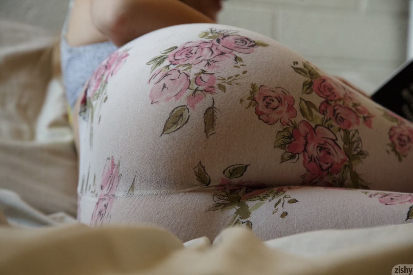 Zishy model Bridgette Vaughn posing in leggings and bra in Raising Arizona