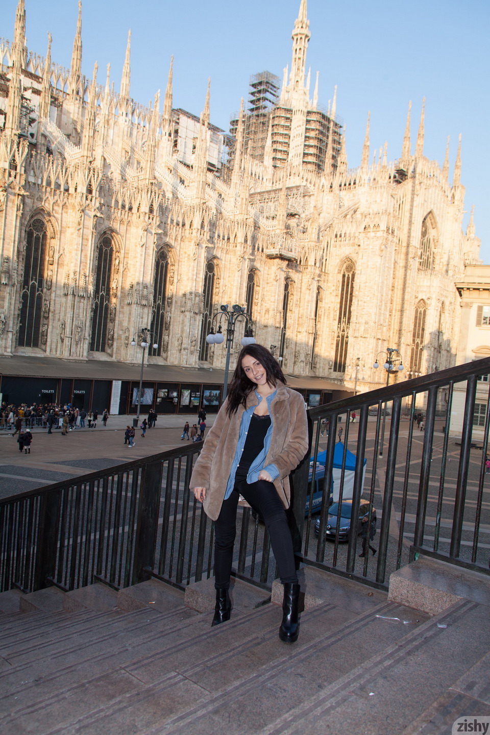 New Zishy model Vincenza Boscone flashes breasts in public and swims naked in Tour Di Milano